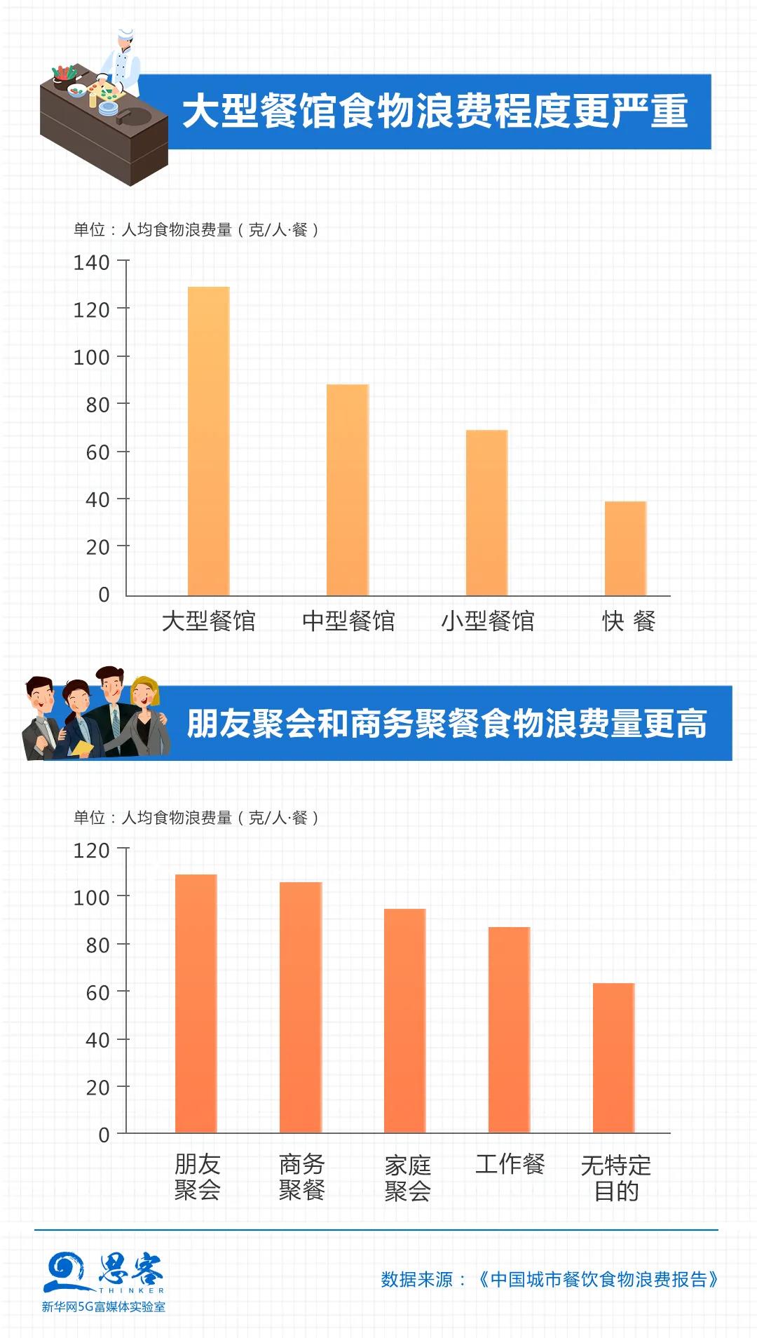 大型餐館等是餐飲食物浪費的“重災區(qū)”。調研顯示,大型餐館的人均浪費量最高,為每餐每人132克,是快餐人均浪費量(每餐每人38克)的近3.5倍。