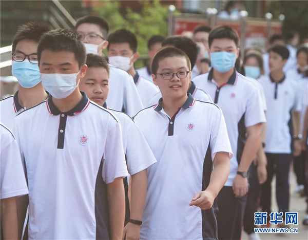 9月1日,武漢中學(xué)的學(xué)生準(zhǔn)備參加開學(xué)典禮。當(dāng)日,武漢市2842所中小學(xué)、幼兒園迎來開學(xué),涉及學(xué)生139.9萬人,百萬學(xué)子重返校園。新華社記者肖藝九攝