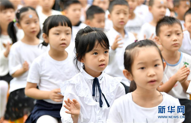 8月31日,西安市新城區(qū)后宰門小學一年級新生在開學典禮上。 當日,陜西西安市的多所中小學迎來秋季開學報到。 新華社記者 劉瀟 攝