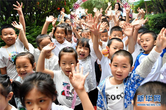 8月31日,西安市新城區(qū)后宰門小學一年級新生進入校園。 當日,陜西西安市的多所中小學迎來秋季開學報到。 新華社記者 劉瀟 攝