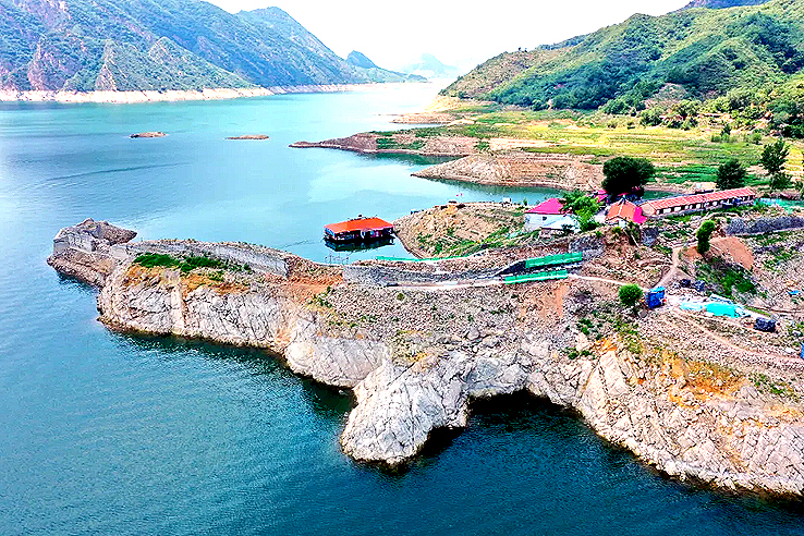 戚輝介紹,由于水庫位于燕山山脈沉降地帶東南構(gòu)造帶與華夏構(gòu)造帶的復(fù)合部位,地質(zhì)構(gòu)造復(fù)雜,四周的石灰?guī)r、白云巖及少部分頁巖巖體,由于流水侵蝕與褶皺斷裂作用,塑造出一系列奇峰怪石與陡崖懸壁,是北國(guó)極為罕見的山水風(fēng)光。