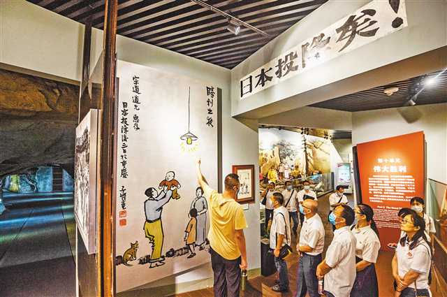 9月3日,九龍坡區(qū),重慶建川博物館抗戰(zhàn)文物博物館,觀(guān)眾正在觀(guān)看豐子愷于1945年8月18日創(chuàng)作的《勝利之夜》。記者 龍帆 攝/視覺(jué)重慶