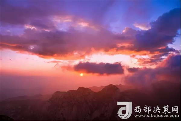 華山日出亦被列為華山自然風(fēng)光中的重要景觀之一。是時(shí),但見夜幕自東方悄然隱退,晨曦初露,漸漸霞光瑰麗,云源奔涌。瞬間,一輪火球噴薄而出,繼而光芒四射,氣象萬(wàn)千,整個(gè)世界大放光明,游人身心為之一振。待云霧散盡,蒼松翠柏,則更加清麗悅目,美妙神奇。故而,游名山者必登華山,登華山者必觀日。