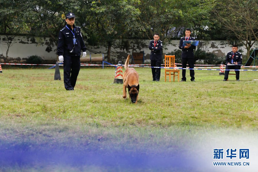 重慶市刑偵支(大)隊警犬部門開展實戰(zhàn)比武練兵。圖為草坪搜尋項目比賽中,警犬正在搜尋。新華網(wǎng)發(fā)(耿駿宇 攝)