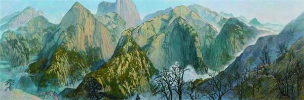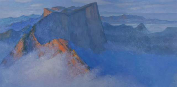 田學(xué)森離開(kāi)繁華的大都市,懷著一顆敬畏自然,與天地精神交流的向往,感受華山的厚重,殉道般的投入創(chuàng)作。甘于寂寞,獨(dú)處華山十年,借鑒傳統(tǒng)山水畫意境,用油畫材料技法嘗試為千古華岳寫照。