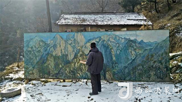 值得提起的是,田學(xué)森在華山十年,每幅畫都是在現(xiàn)場(chǎng)揮筆完成。美術(shù)界有些常用的省時(shí)省力的畫法,田學(xué)森都不喜歡去做。他喜歡與畫框共同經(jīng)歷自然環(huán)境的時(shí)間和空間,為千古華山寫照,表達(dá)對(duì)華山的感悟和敬意。他說(shuō),“華山是頂天立地的脊梁,我們每個(gè)人走的路,都是尋脈的過(guò)程。”