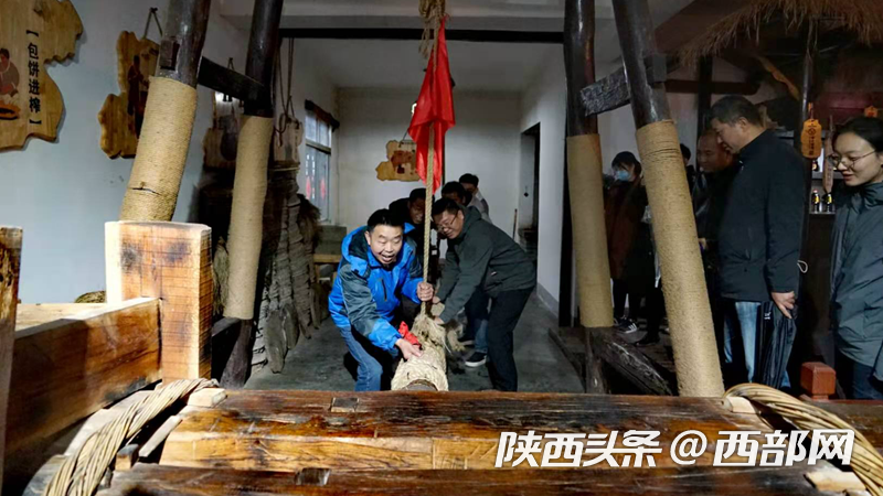 “手要穩(wěn)啊、都攢勁啊、多出油啊、奔小康啊……”只要游客喜歡,在石泉縣中壩作坊小鎮(zhèn)當(dāng)賣油郎的石榮成總會邊喊著鏗鏘有力的號子,邊通過操作木榨機撞桿向游客和消費者還原展示當(dāng)?shù)刈钤嫉牟俗颜ビ图妓嚕?ldquo;以讓大家對傳統(tǒng)文化有更多了解”。