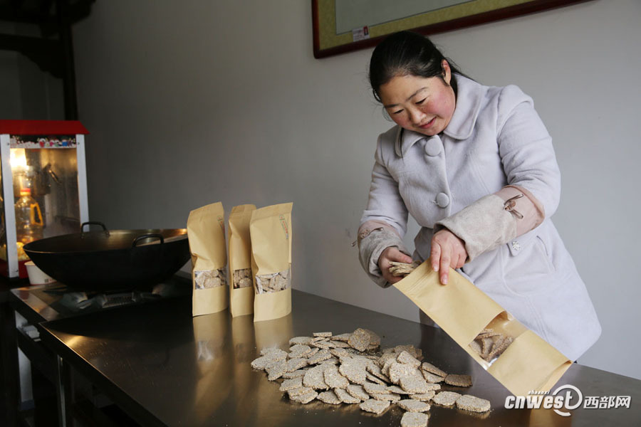 安康石泉縣后柳鎮(zhèn)有個(gè)中壩作坊小鎮(zhèn),這個(gè)小鎮(zhèn)把72行手藝人聚集在一起,一行一店,手藝人在店里上班,拿工資吃免費(fèi)工作午餐。51歲的古永鳳以前在家做豆腐,現(xiàn)在她被請(qǐng)到作坊小鎮(zhèn)的豆腐坊做豆腐,一月1500元。