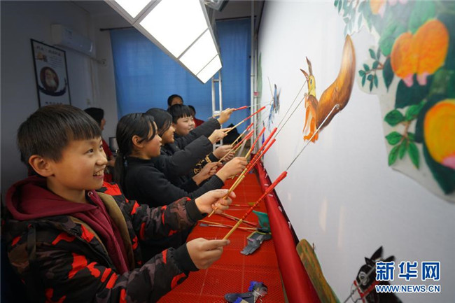 11月24日,河北省沙河市西油村小學(xué)學(xué)生在練習(xí)表演皮影戲。新華社記者 范世輝 攝