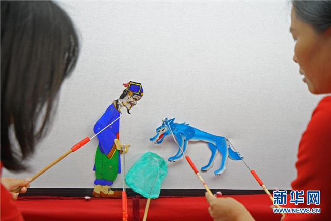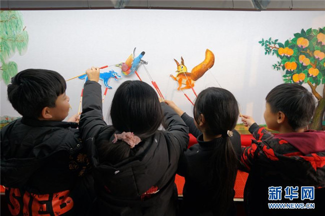 11月24日,皮影戲藝人在河北省沙河市西油村小學(xué)表演皮影戲。新華社記者 范世輝 攝