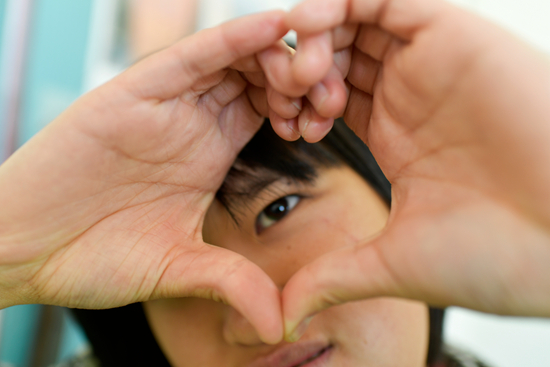 11月9日,貴州省遵義市鳳岡縣特殊教育學校,一名學生在教室里上課時對著照相機做心形手勢。