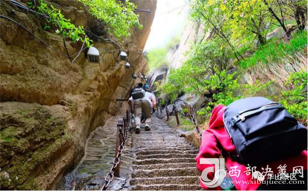 對于登山者來說,首先親密接觸到的便是華山奇險兼?zhèn)涞纳铰贰R宦沸腥?,必?jīng)諸多絕險要道,才可飽賞華山之險,因此登華山的這條路從古至今都大名鼎鼎。三面臨空的鷂子翻身更是華山道的險中之險,登山者經(jīng)過時,須如鷹鷂一般左右翻轉身體才能得以通過,身臨其境,相信它的鬼斧神工會讓你嘆為觀止。
