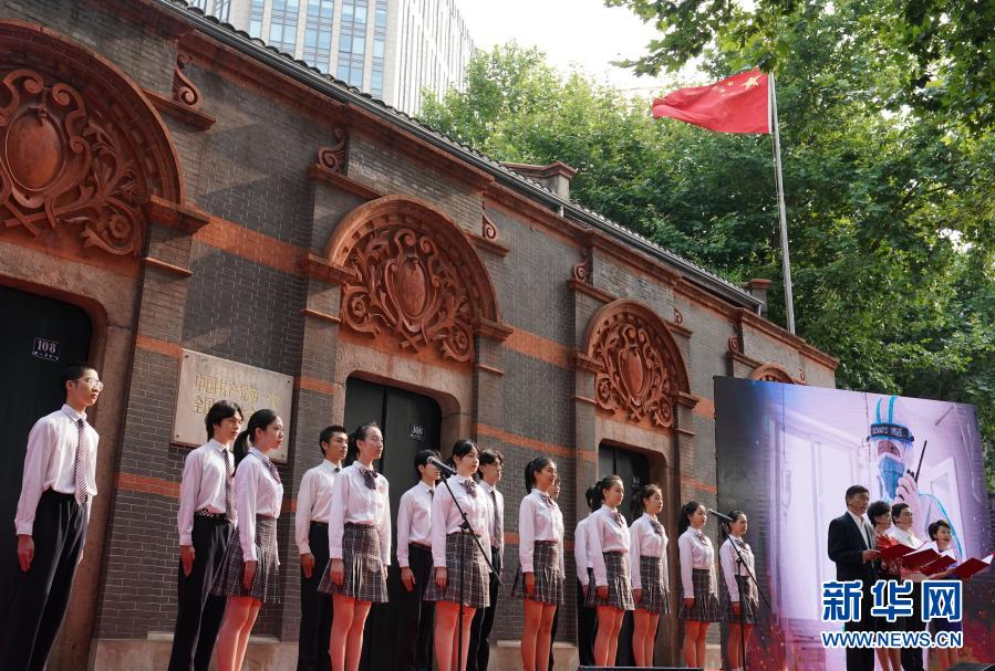 2020年7月1日,“七一”重溫入黨誓詞儀式在中共一大會(huì)址前舉行。這是活動(dòng)現(xiàn)場以詩朗誦形式講述抗疫一線的黨員故事。新華社記者 劉穎 攝