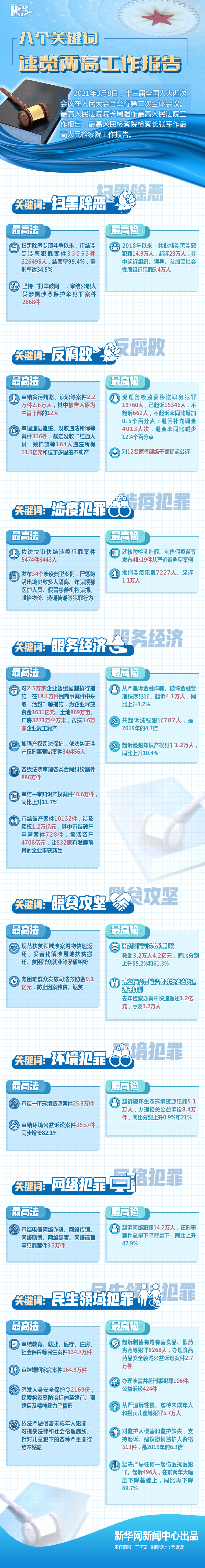 8日提請十三屆全國人大四次會(huì)議審議的兩高報(bào)告,交出一份滿滿的成績單。掃黑除惡“打傘破網(wǎng)”、嚴(yán)懲腐敗守護(hù)平安、加強(qiáng)民生司法保障……一串串?dāng)?shù)字勾勒出法治中國建設(shè)的亮點(diǎn)。