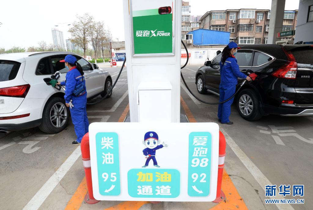 3月31日,河北省邯鄲市叢臺區(qū)一家加油站的工作人員給車輛加油。新華社發(fā)(郝群英 攝)