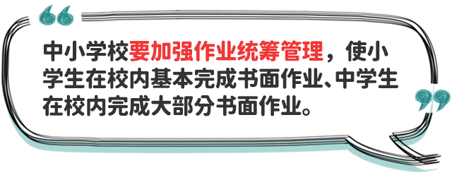 四、防止學(xué)業(yè)過重?cái)D占睡眠時(shí)間。中小學(xué)校要提升課堂教學(xué)實(shí)效,加強(qiáng)作業(yè)統(tǒng)籌管理,嚴(yán)格按照有關(guān)規(guī)定要求,合理調(diào)控學(xué)生書面作業(yè)總量,指導(dǎo)學(xué)生充分利用自習(xí)課或課后服務(wù)時(shí)間,使小學(xué)生在校內(nèi)基本完成書面作業(yè)、中學(xué)生在校內(nèi)完成大部分書面作業(yè),避免學(xué)生回家后作業(yè)時(shí)間過長,擠占正常睡眠時(shí)間。校外培訓(xùn)機(jī)構(gòu)培訓(xùn)結(jié)束時(shí)間不得晚于20:30,不得以課前預(yù)習(xí)、課后鞏固、作業(yè)練習(xí)、微信群打卡等任何形式布置作業(yè)。