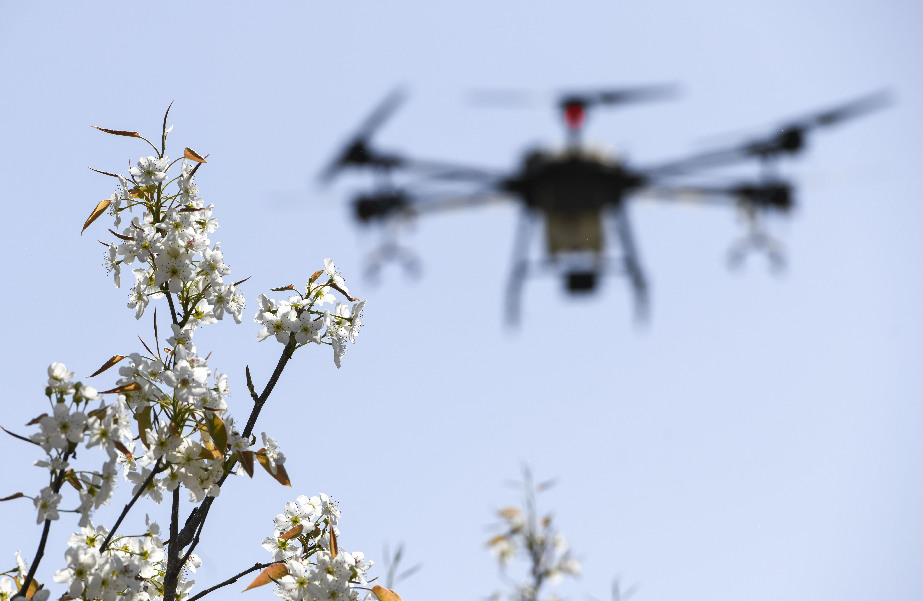 在新疆南疆等地,梨樹花期很短,且往往伴隨沙塵天氣,梨樹授粉作為梨產(chǎn)業(yè)發(fā)展中最為關(guān)鍵的一環(huán),以往通過人工授粉或者蜜蜂授粉進(jìn)行。隨著人工成本不斷增加以及產(chǎn)業(yè)健康發(fā)展需要,以蜜蜂采集的高活性授粉用花粉聯(lián)合無人機(jī)噴施的蜂機(jī)協(xié)同作業(yè)高效液體授粉技術(shù)開始出現(xiàn)。