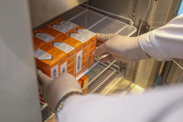 醫(yī)護人員從移動疫苗接種車上的冷藏箱內(nèi)取出新冠疫苗。新華社記者張玉薇 攝
