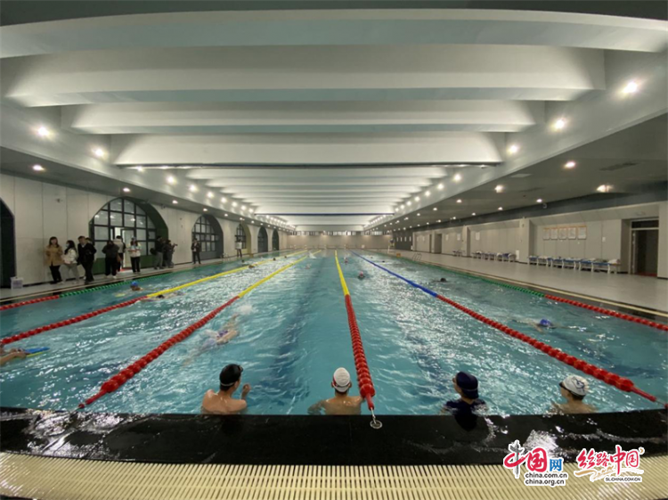 在學(xué)校室內(nèi)游泳館,該校體育老師介紹,泳池是標(biāo)準(zhǔn)的五條道50米長池,采用智能水循環(huán)系統(tǒng),定時(shí)加溫、消毒,保證水質(zhì)干凈。學(xué)校還有按國家標(biāo)準(zhǔn)建設(shè)的籃球場,田徑場,各項(xiàng)體育設(shè)施非常先進(jìn)。