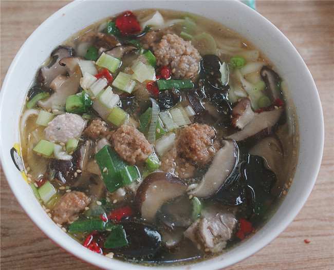 一碗18元的香菇面,里頭有香菇、蝦米、木耳、里脊肉片、汆肉丸子和油炸丸子等原料,再撒上蔥蒜和辣椒,香氣四溢。“以前還要放排骨和酥肉呢。”香菇面店的老板李瑞強(qiáng)說(shuō),父親1988年開始賣香菇面,父親去世后,他在鎮(zhèn)上開了店,希望能將這份味道長(zhǎng)長(zhǎng)久久傳承下去。