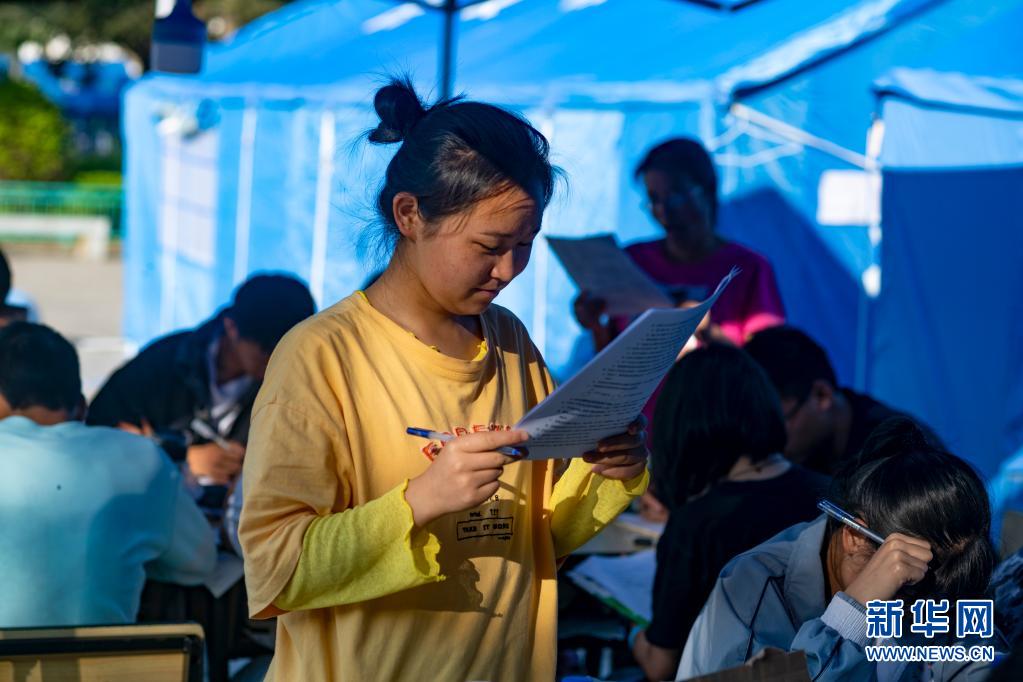 5月24日,漾濞一中高三年級學(xué)生在帳篷下學(xué)習(xí)。新華社記者胡超攝