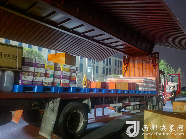 7月22日晚,西鳳物流各部門人員齊上陣,耗時六個小時連夜將捐贈物資打包裝車。捐贈物資中,既有礦泉水、火腿泡面等災區(qū)急需的生活物資,也有藿香正氣水、消毒液、口罩等可用于生活和急救的醫(yī)療物資,為一線救援人員和當?shù)厥転娜罕娞峁┌踩】档纳钛a給以及防疫保障。