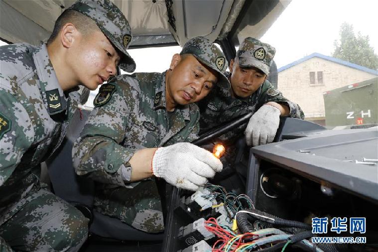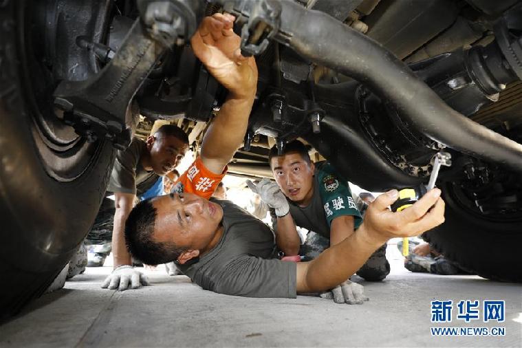 聯(lián)勤保障部隊(duì)某團(tuán)修理技師張俊凱在檢修車(chē)輛(2019年6月5日攝)。 新華社發(fā)(曾曾 攝)