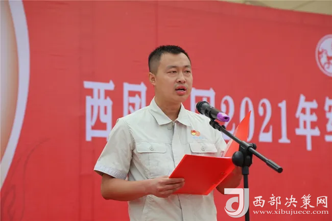 西鳳集團(tuán)公司工會(huì)主席、勞動(dòng)競(jìng)賽委員會(huì)主任陳軍紅宣讀《關(guān)于對(duì)2021年軍訓(xùn)優(yōu)秀隊(duì)員及優(yōu)秀教官進(jìn)行表彰獎(jiǎng)勵(lì)的決定》及《關(guān)于對(duì)第五屆基酒生產(chǎn)系統(tǒng)技能大賽獲獎(jiǎng)集體和個(gè)人進(jìn)行表彰獎(jiǎng)勵(lì)的決定》