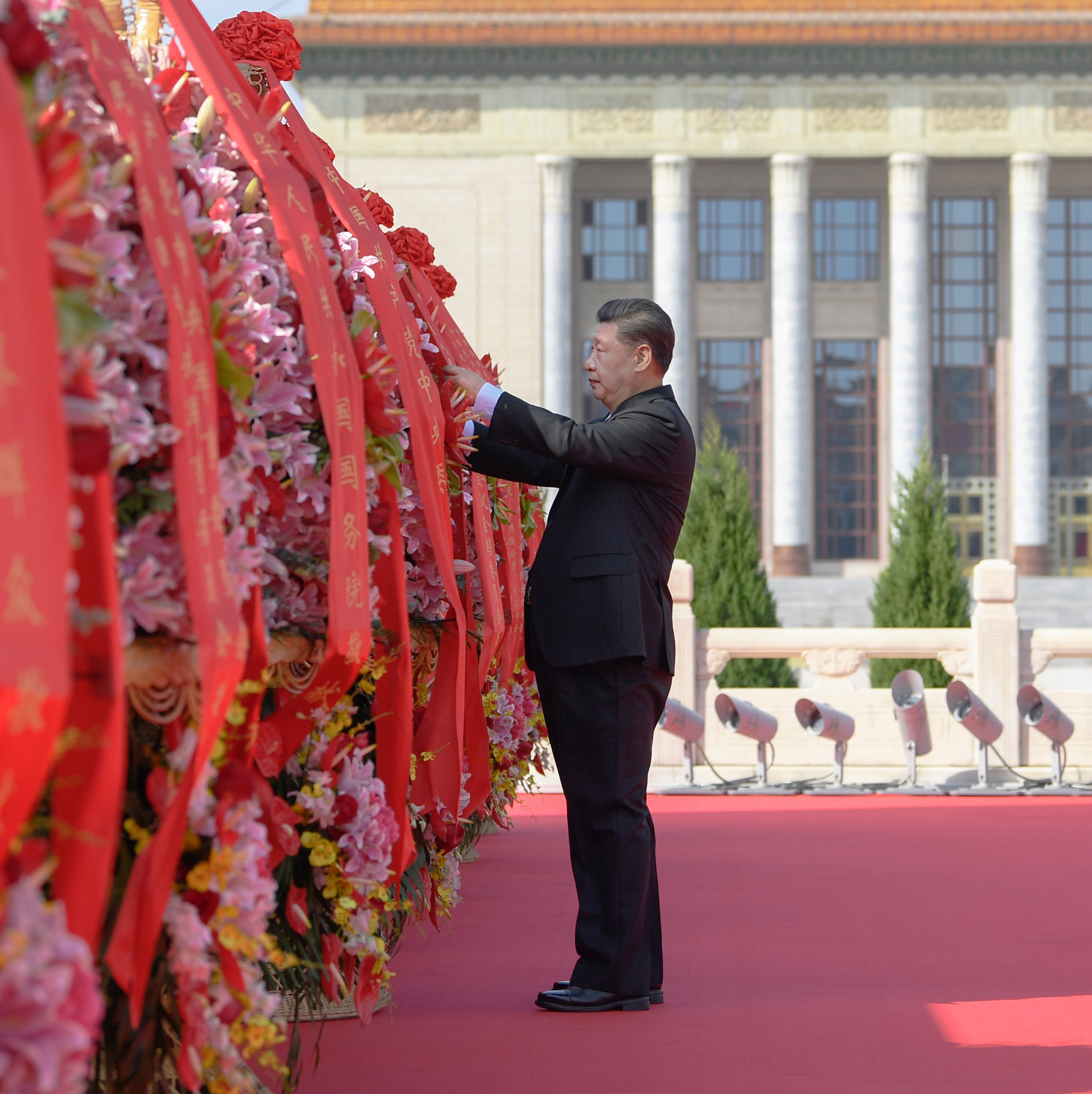 △2020年9月30日上午,習(xí)近平總書(shū)記出席烈士紀(jì)念日向人民英雄敬獻(xiàn)花籃儀式。這是習(xí)近平總書(shū)記整理花籃上的緞帶。