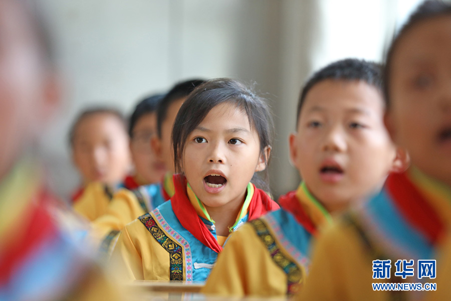 9月28日,“苗族民歌”非物質文化遺產(chǎn)傳承人任茂淑走進重慶市彭水苗族土家族自治縣鞍子鎮(zhèn)小學4年級1班的教室,教孩子們傳唱苗族民歌代表作《嬌阿依》。重慶彭水地處武陵山區(qū),位于烏江下游,這里民族風情濃郁,生活在彭水的苗家兒女能歌善舞,在長期的生活中積累了以《嬌阿依》等為代表的一批苗族民歌。2014年,彭水苗族民歌被列入第四批國家級非物質文化遺產(chǎn)代表性項目名錄。新華網(wǎng)發(fā)(趙勇 攝)