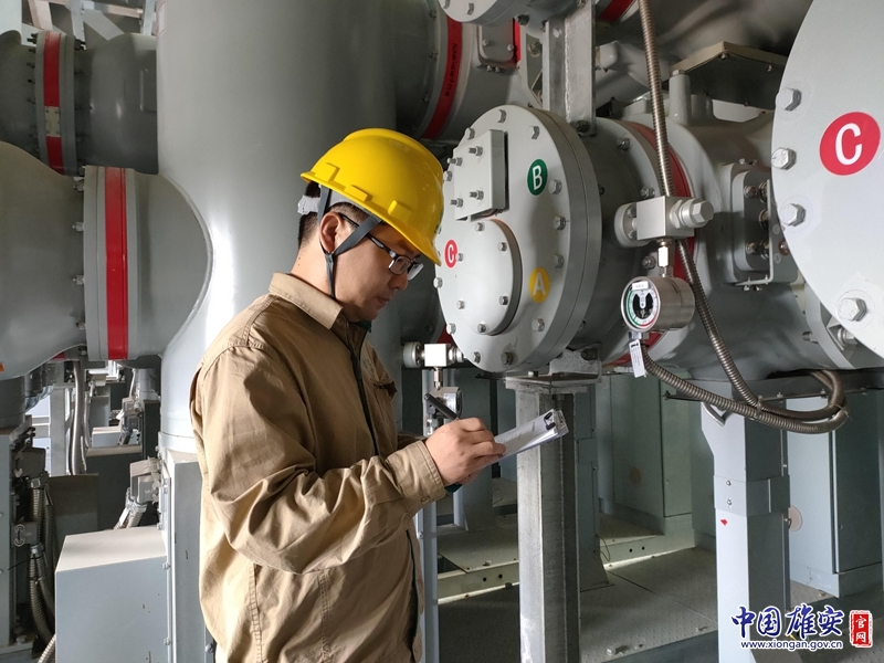 國網(wǎng)雄安新區(qū)供電公司變電運維人員在220千伏劇村變電站進(jìn)行設(shè)備特巡。常翠穎 攝