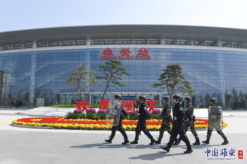 雄安站樞紐片區(qū)公安分局和武警河北總隊保定支隊某部正在進(jìn)行聯(lián)合巡邏。任雙歡 攝