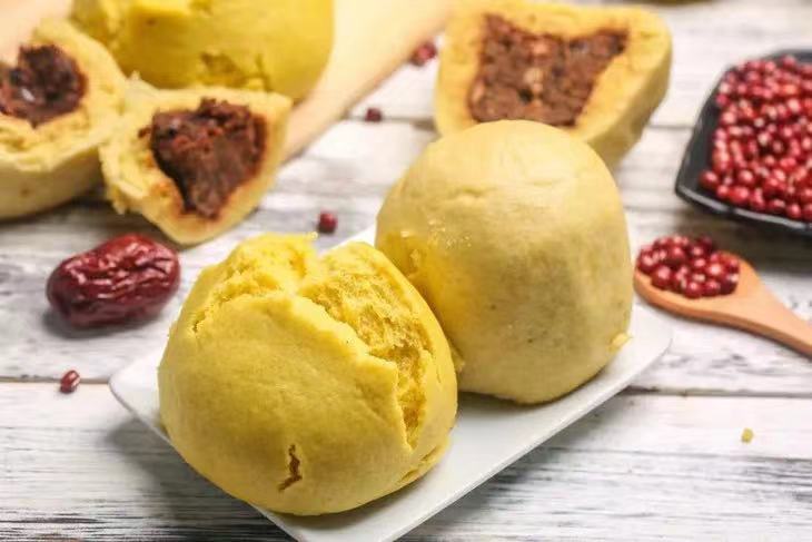 黃饃饃是流行于陜北地區(qū)的一種傳統(tǒng)名小吃,原料由硬糜子面發(fā)酵,包裹蒸煮好的紅棗、紅豆擠壓摻合成的豆棗泥餡蒸制而成,口感松軟帶甜,營養(yǎng)豐富易消化。因其顏色呈黃色,所以名為“黃饃饃”。又因風(fēng)味獨(dú)特,曾上過紀(jì)錄片《舌尖上的中國》。