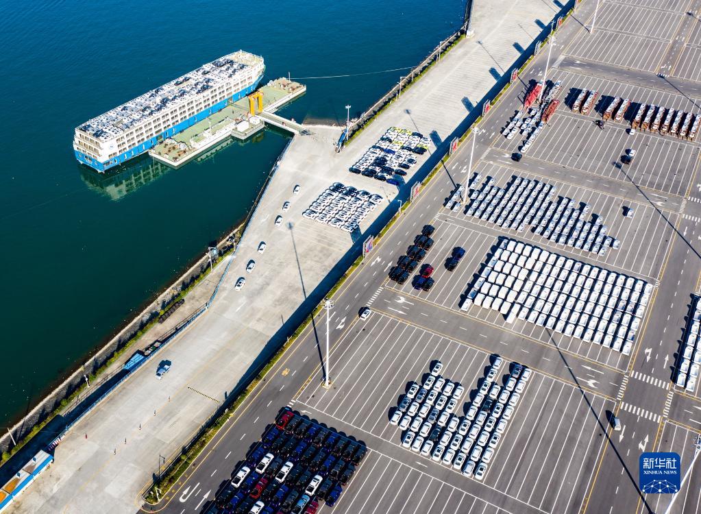 這是三峽庫區(qū)湖北省宜昌市秭歸縣秭歸港車輛分撥轉(zhuǎn)運現(xiàn)場(2020年11月13日攝,無人機照片)。新華社發(fā)(鄭家裕 攝)