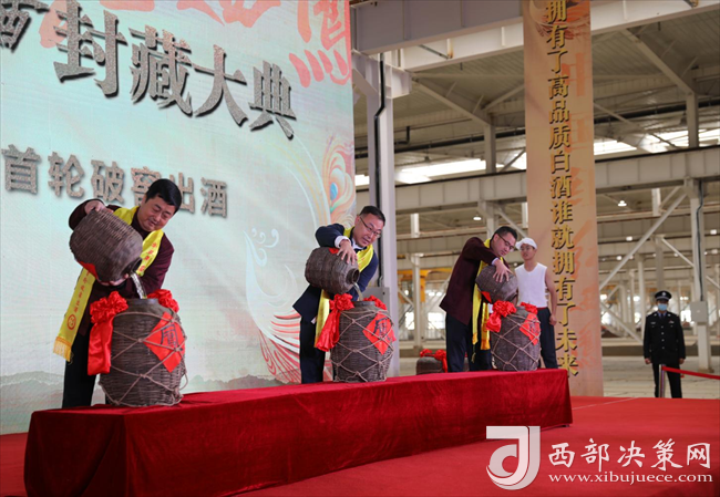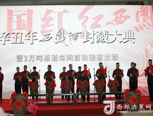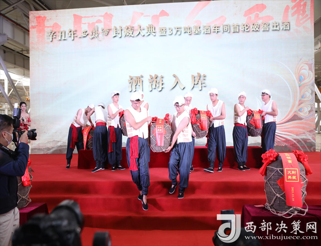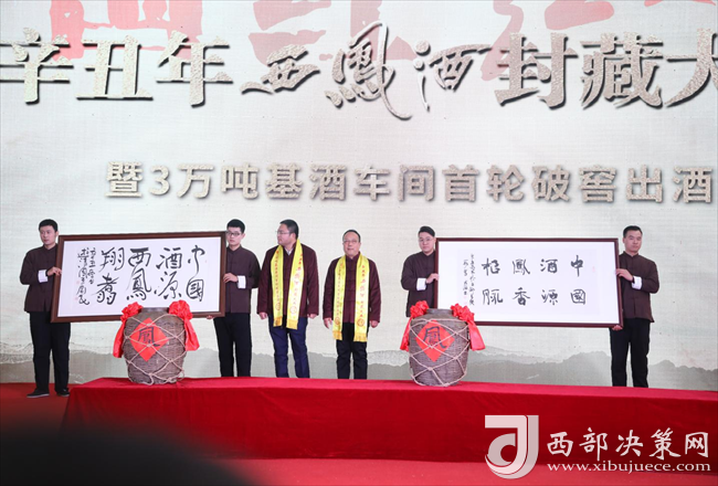 與會領(lǐng)導(dǎo)、優(yōu)秀職工代表共同上臺封藏西鳳新酒,傳承西鳳酒3000年匠藝,慶祝西鳳擴(kuò)能的輝煌時刻。