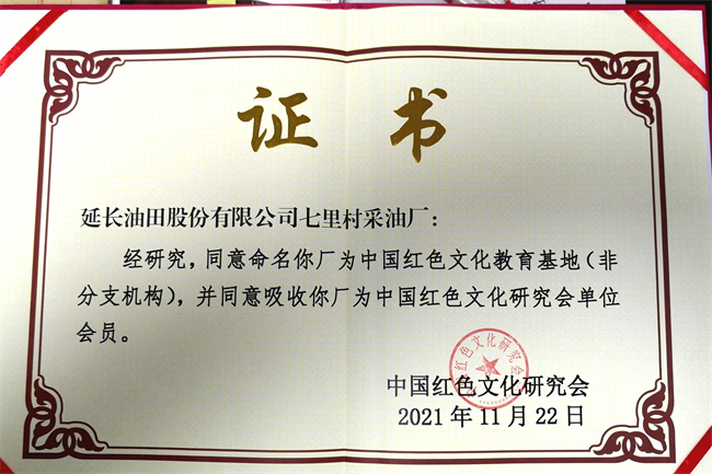 西部決策網(wǎng)訊(記者張靜 通訊員 劉亞萍)日前,延長(zhǎng)石油七里村采油廠被中國(guó)紅色文化研究會(huì)命名為中國(guó)紅色文化教育基地,并授牌和頒發(fā)了證書。