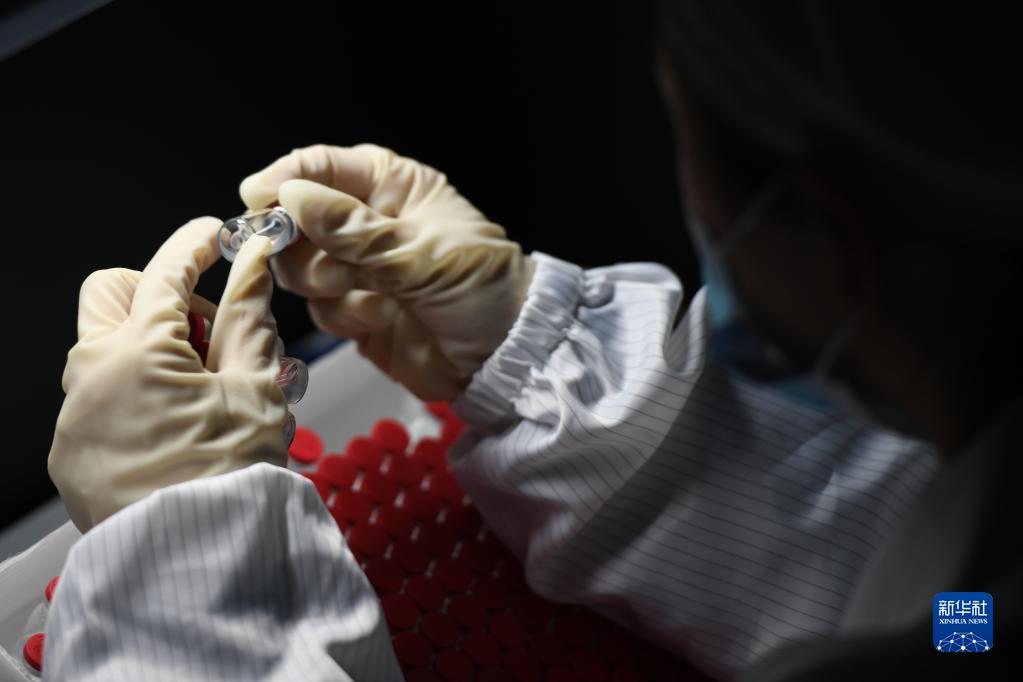 工作人員在國藥集團中國生物北京生物制品研究所的新冠病毒滅活疫苗分包裝車間內(nèi)工作(2020年12月25日攝)。新華社記者 張玉薇 攝