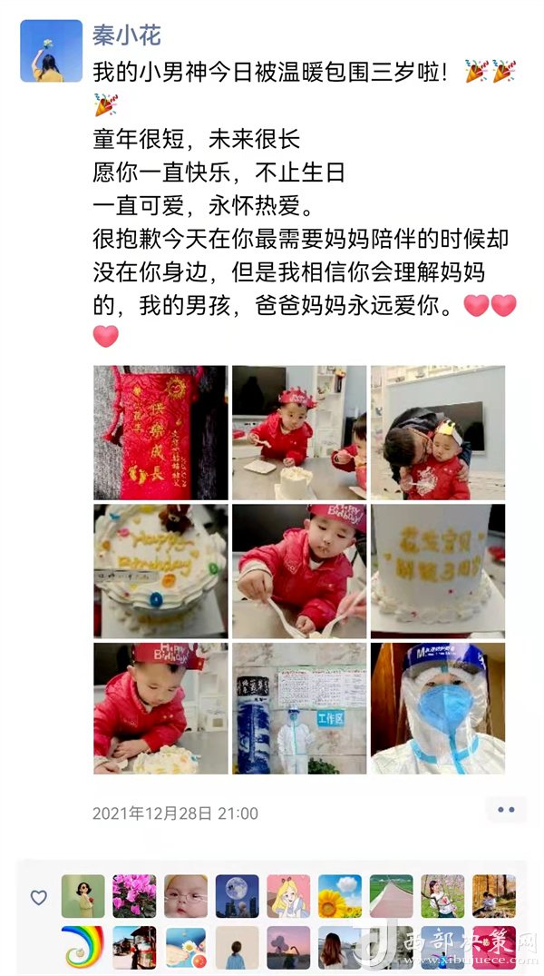 12月28日,是她兒子三歲生日,兒子生病時,她在西安支援。如今,兒子生日,她又在隔離點,她把對兒子的愧疚之心轉化為對隔離群眾的關愛之心。