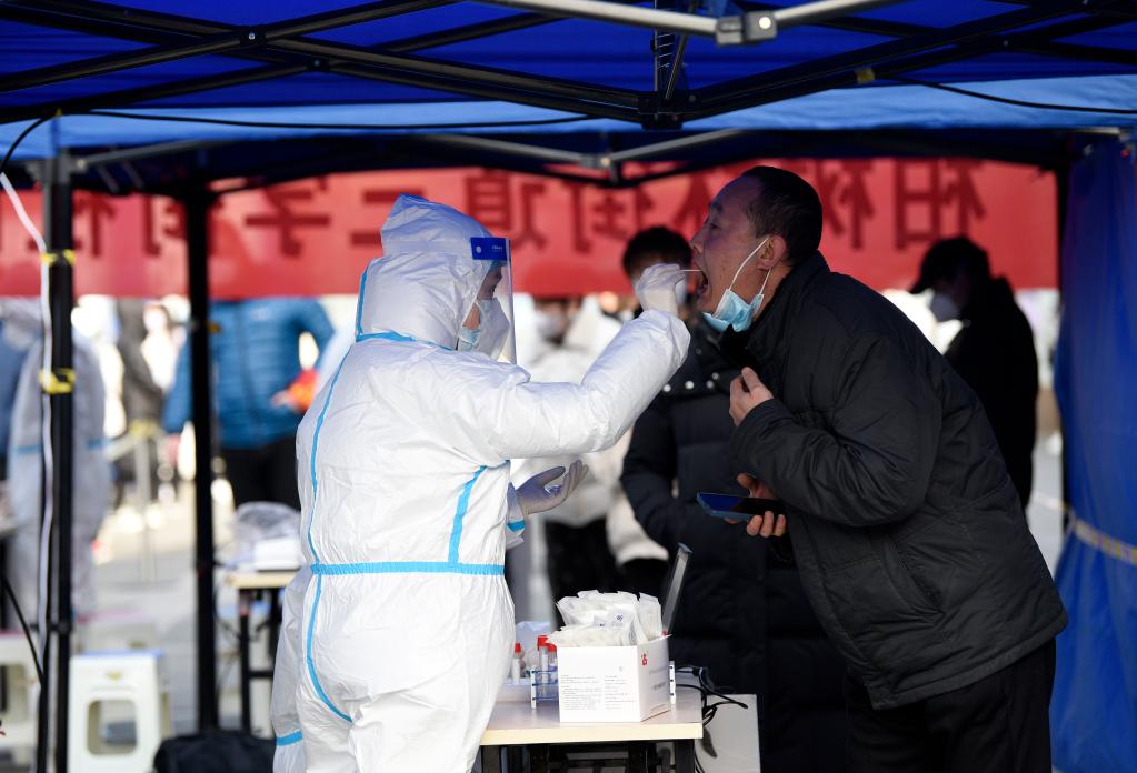 12月17日,市民在西安市碑林區(qū)柏樹林街道三學(xué)街社區(qū)核酸檢測點進(jìn)行核酸檢測。新華社記者 劉瀟 攝