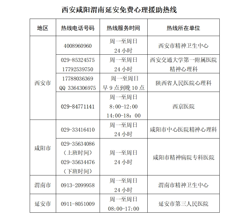 省新冠肺炎疫情醫(yī)療救治心理干預(yù)專家組,組建心理援助熱線工作團(tuán)隊(duì),24小時為疫情心理求助者提供心理援助服務(wù)。同時,省衛(wèi)生健康委會同省政務(wù)服務(wù)中心在省12320衛(wèi)生熱線開通疫情心理援助熱線專席,依托陜西12345對全省有關(guān)疫情心理干預(yù)的訴求進(jìn)行引導(dǎo)和分轉(zhuǎn)。