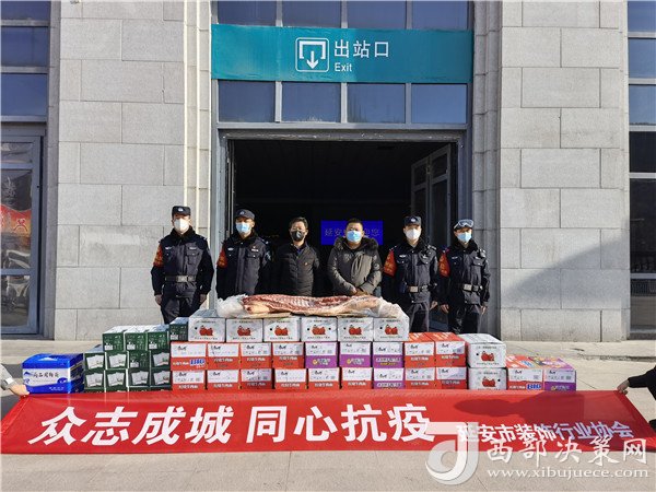 西部決策網(wǎng)訊 疫情擋不住溫情,愛心匯聚戰(zhàn)疫情。1月2日,延安市裝飾行業(yè)協(xié)會(huì)一行來到延安火車站,向正在執(zhí)勤的民警、輔警送來豬肉、N95口罩、方便面、牛奶、消毒液等物資,助力一線民警抗擊疫情。