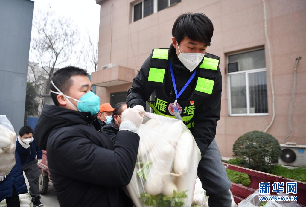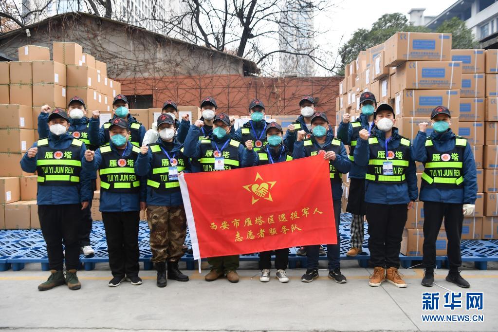 退役軍人志愿突擊隊隊員搬運(yùn)防疫物資。新華社記者 張博文 攝