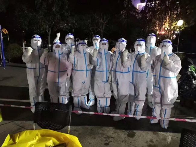 當(dāng)所有工作結(jié)束后已經(jīng)是凌晨?jī)牲c(diǎn),走出樓門抬頭只能看到夜色中飄繞的云霧。一陣寒風(fēng)吹過(guò),困意、寒意、饑餓席卷而來(lái),身前靜謐的路燈,與身后的萬(wàn)家燈火形成了鮮明對(duì)比,此刻的他們別無(wú)他想,只有一個(gè)信念:一定要堅(jiān)守住這片陣地。