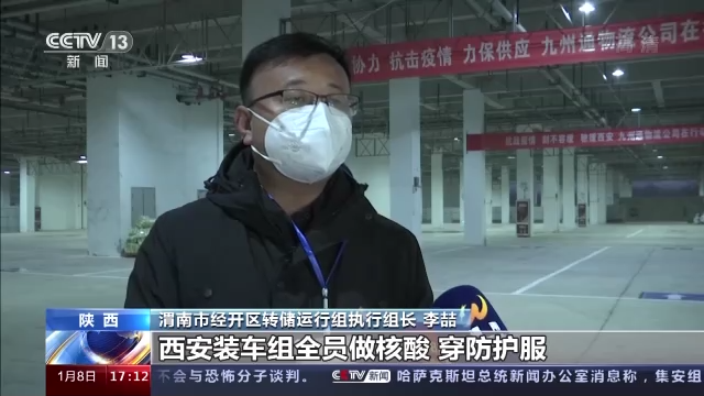 渭南市經(jīng)開(kāi)區(qū)轉(zhuǎn)儲(chǔ)運(yùn)行組執(zhí)行組長(zhǎng) 李喆:專車通道、裝卸組人員是分離的,西安這個(gè)裝車組全員做核酸、穿防護(hù)服。西安車輛過(guò)來(lái),駕駛員不下車,全程貼封條,24小時(shí)不間斷兩班倒。