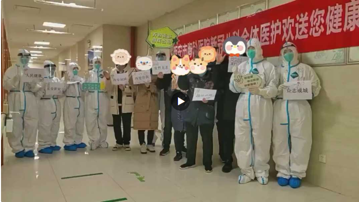 患者小呂與“大白”們一一招手道別。她馬上就要由西安胸科醫(yī)院轉(zhuǎn)出接受健康監(jiān)測(cè)、康復(fù)隔離。“大白加油,謝謝你們守護(hù)我們。”小呂在紙上寫下臨別贈(zèng)語(yǔ),這是每一位出院患者的“道別儀式”。