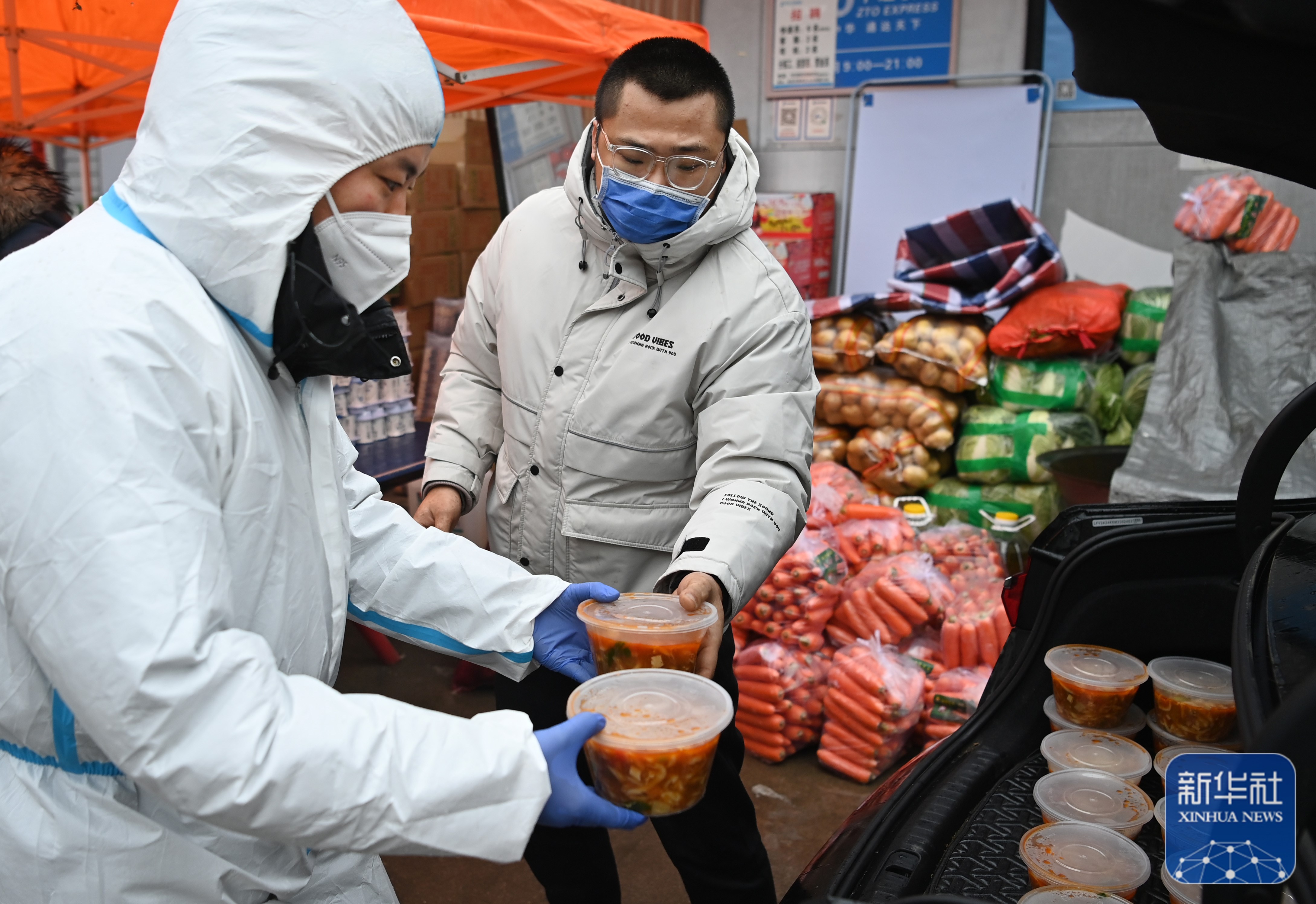 1月8日,志愿者在為防疫一線人員運(yùn)送“愛心餐”。