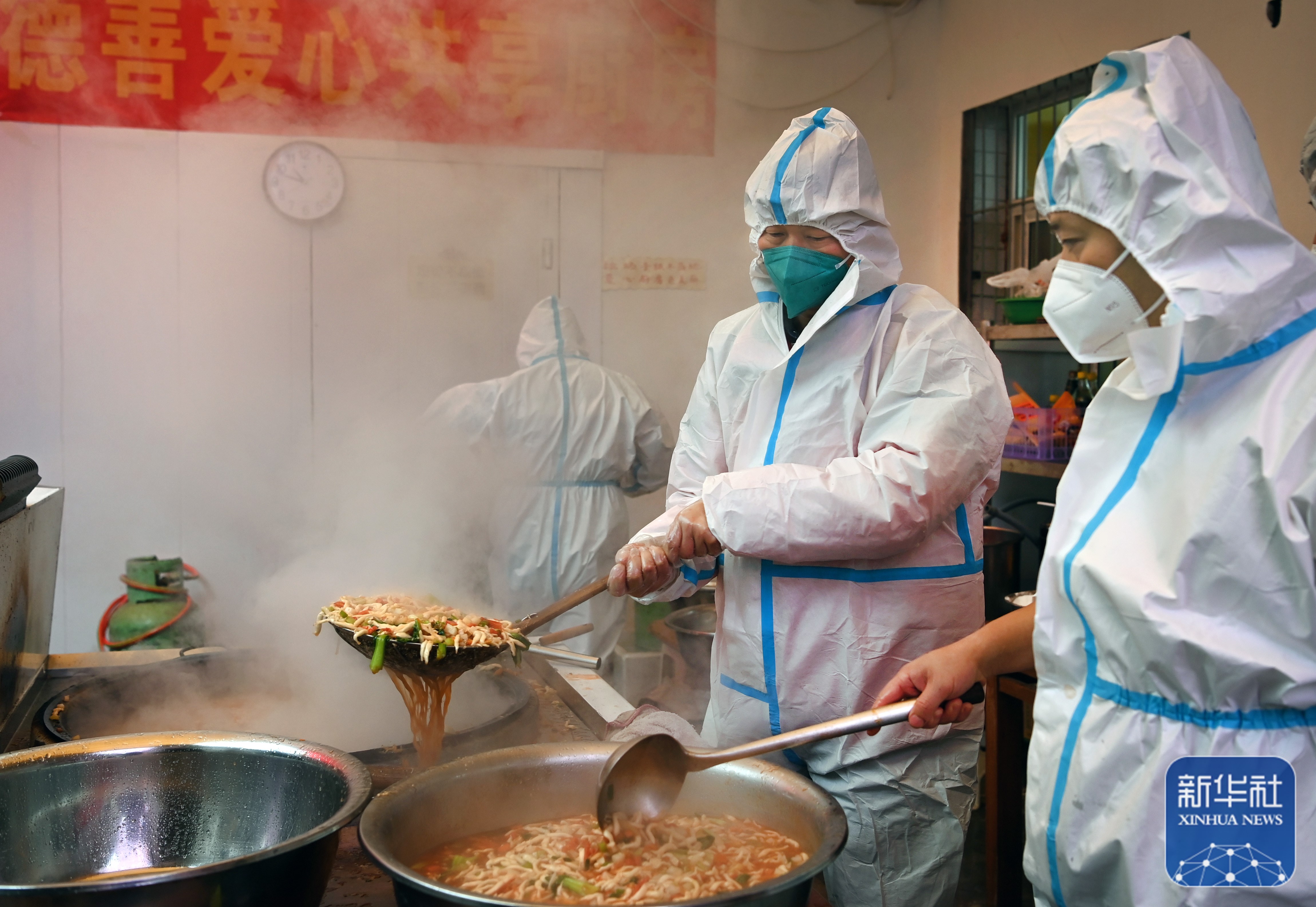 “一天做飯成本約5000元,我和團(tuán)隊(duì)的人一起分?jǐn)偂,F(xiàn)在有不少愛心人士主動(dòng)提供幫助,不斷有物資運(yùn)進(jìn)廚房所在的庭院,花費(fèi)逐步降低,大家都有信心堅(jiān)持到疫情結(jié)束。”許凱說(shuō),“雖然我們都不富裕,但‘愛心餐’是我們對(duì)抗疫一線人員的敬意。”