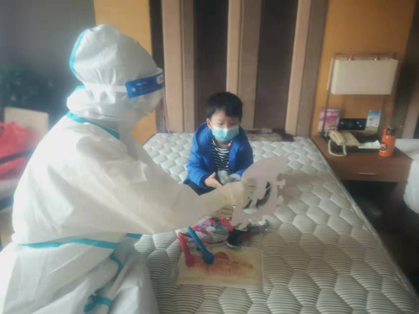 4歲的豆豆不明白自己為什么一個(gè)人待在酒店,只是懵懵懂懂地知道“爸爸、媽媽和奶奶都生病了。”