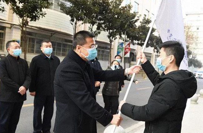 超聲科規(guī)培醫(yī)師白曉旭從院黨委副書記馮廣林手里接過隊旗時鄭重表示:“一定不負(fù)一附院培育,不畏艱險,不辱使命,嚴(yán)格規(guī)范操作,堅決完成任務(wù)。”來自西藏阿里地區(qū)委派的2名住培醫(yī)師晉美加措和米瑪占堆也毅然加入到了這場抗疫阻擊戰(zhàn)中。