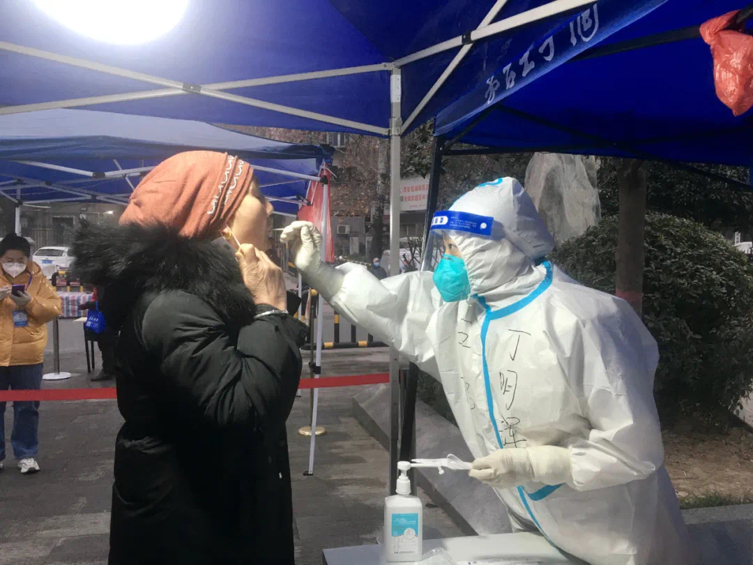 第二次婚期定于12月18日,14日丁明輝在科室交接完手頭工作,開始休假籌備婚禮事宜。晚7點回到家就聽說長安大學出現(xiàn)疫情,整個學校連夜進行核酸檢測。她深知,兇猛的疫情此時更需要醫(yī)務工作者,需要自己。第二天她在社區(qū)完成自己的核酸檢測,得到陰性報告后,遂結束休假返回醫(yī)院上班,此后服從醫(yī)院派遣多次外出執(zhí)行核酸采集任務,并于25日起開始留住醫(yī)院準備參加定點醫(yī)院支援。后因任務調整,2022年1月2日晚來到回民街市五院第10核酸采樣隊,開始和同事一起執(zhí)行廟后街社區(qū)及市區(qū)多處核酸采集工作至今。